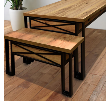 The Iron Table finish is made of carbon steel with black electrostatic paint and Antiqua coated MDF, giving a rustic and cozy look that refers to Tables made of demolition wood with the durability of MDF.