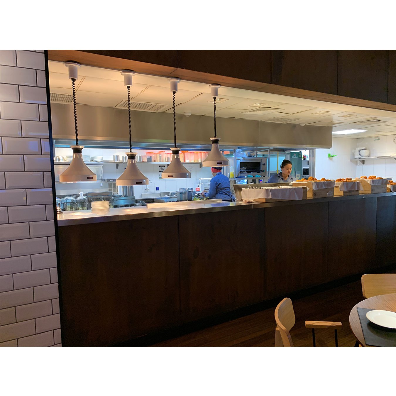 When used with infrared lamps, they allow food temperature maintenance. The ease of raising or lowering the luminaire with a simple mechanical movement turns the system into something different and extremely practical.