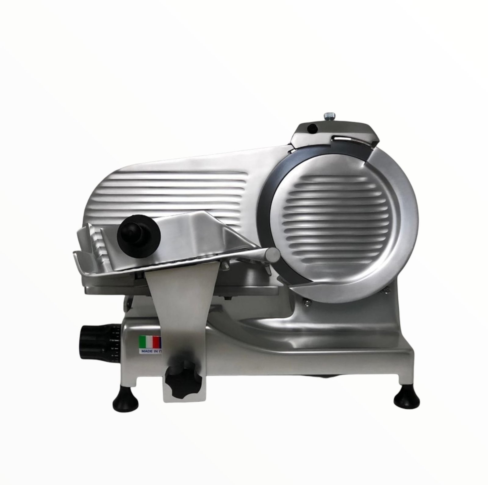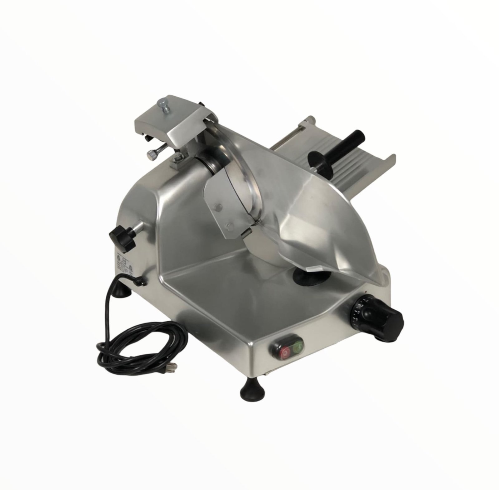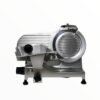 The Slicer Trevi 10″ is a light to medium duty manual slicer with a 10 “blade. The slicer is made of anodized, stain resistant aluminum construction with seamless edges and radius corners. Has a cut capacity of eight hour per day with light-duty cheese and ham slicing capabilities. 0 to 9/16 “slice thickness with motor overload protection and manual reset.